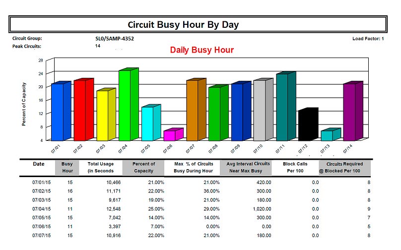 SIP trunking is a voice over IP technology designed to deliver telephone services and unified communications to customers requiring voice, video, and other streaming media applications. SIP facilities can be customized to deliver the required bandwidth necessary for these various applications. In terms of traditional voice technology, the primary metric required to configure SIP facilities for the proper bandwidth involves a determination of the peak concurrent voice-equivalent circuits. ApogeeNet reports can be utilized to analyze the peak number of circuits utilized by traditional trunking for conversion analysis or ongoing analysis of implemented SIP circuits.